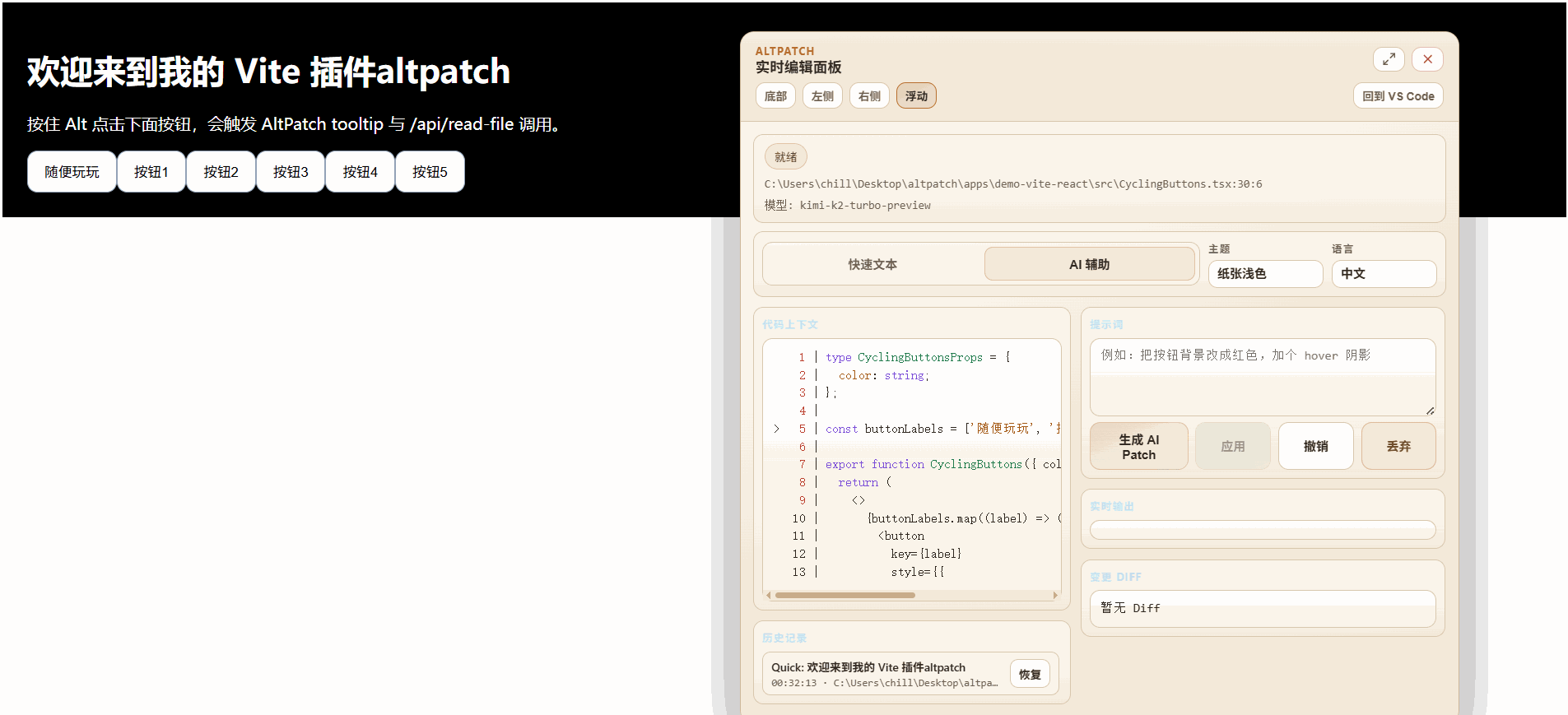 AltPatch 把“想改哪里”直接映射到代码上下文,结合 LLM 生成可执行补丁,让前端团队在不打断节奏的情况下完成修改、验证与交付。